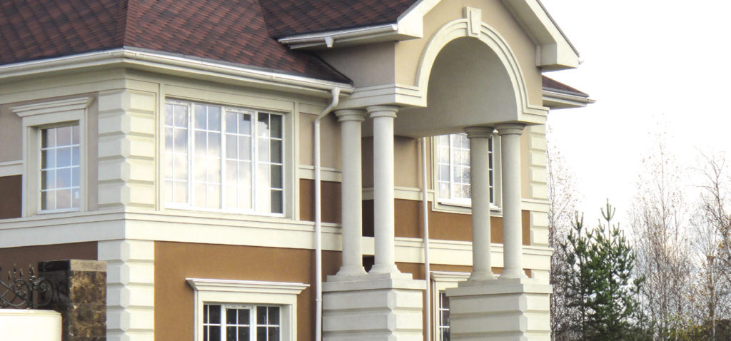 Элементы наружного декорирования фасада дома можно разделить на несколько групп по типу конструкции: