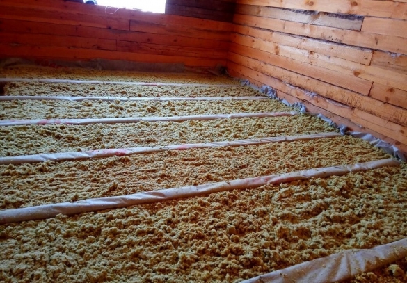 - Крошка. Есть такой вид утепления, как задувной. В этом случае формируется полая коробка, в которую задувается крошеный утеплитель, как на фото. Можно купить уже в виде крошеного утеплителя, так и сделать его самостоятельно.