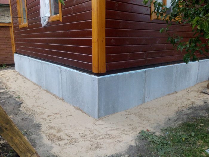 - Короткие сроки проведения работ. С отделкой фундамента в доме среднего размера можно справиться за день.