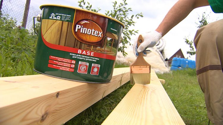 В магазине покупаем любой антисептический грунт по дереву, можно даже недорогой. Он подготовит материал к покраске и защитит от насекомых с плесенью.