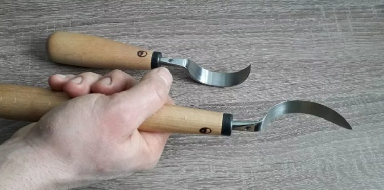 Это мы говорим о сквозных отверстиях, но как же прорезная резьба? На этот случай мы и покупали набор резцов. Сложного здесь ничего нет: по контуру проходимся топориком или ножом-косяком и затем забираем материал полукруглыми стамесками. Для вырезания яйцевидных углублений нужна клюкарза – резец для ложек.
