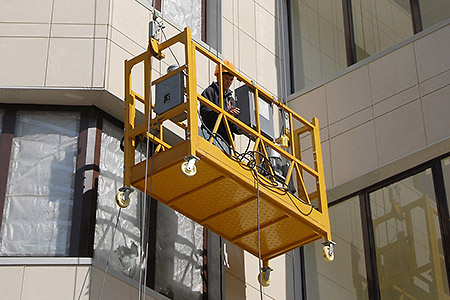 Люлька для фасадных работ – это оборудование повышенной опасности для перевозки рабочих, механизмов, а также строительных материалов вдоль внешней стены многоэтажного здания.