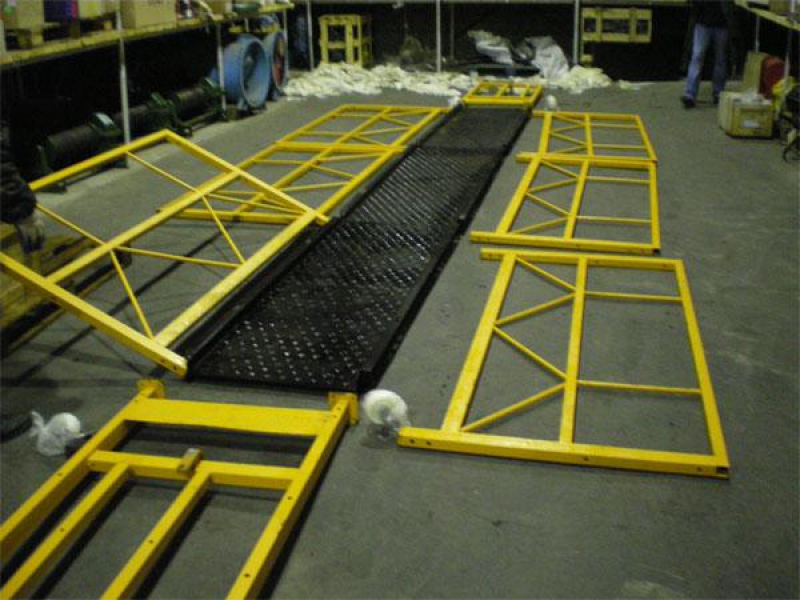На крыше располагаются противовесы. Их масса зависит от комплектации, грузоподъемности и геометрических размеров люльки.
