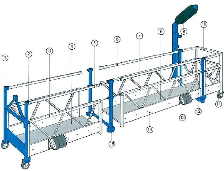 Люлька подвешивается на двух балках или консолях на четыре троса. Два основных, а два страховочных. Под платформой расположены два барабана, по которым движется лебедка. Новые модели подвесных люлек оснащены источниками питания, что позволяет повысить автономность работы на высоте.
