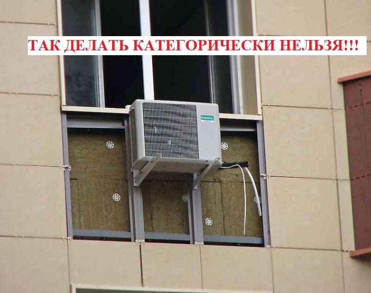 - Запрещается монтировать внешний блок охладительного оборудования со стороны фасада.