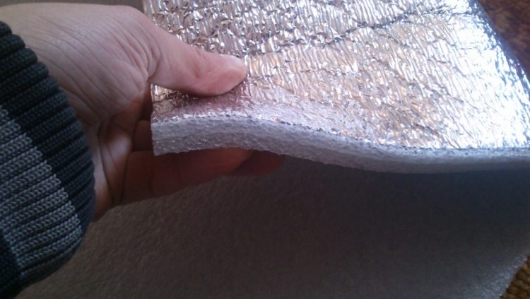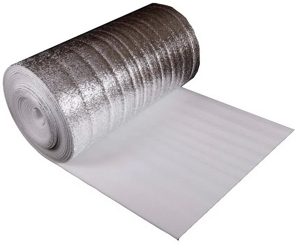 Это — вспененный полиэтилен, фольгированный с одной стороны. По факту, его задача в отражении тепла глянцевой частью, но самостоятельно он используется редко. Производится в 3 классах: