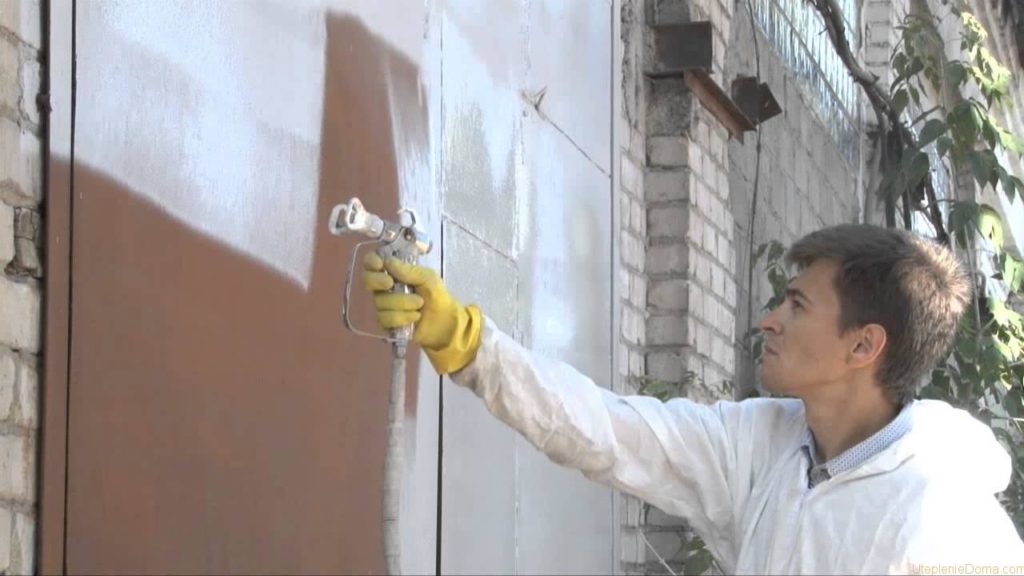 Утепление фасадов жидким утеплителем проводится снаружи здания. В зависимости от физических, химических и эксплуатационных характеристик выделяется несколько видов жидкой теплоизоляции: