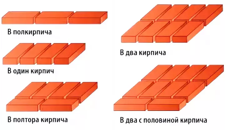 Расход кирпича при определенных схемах кладки