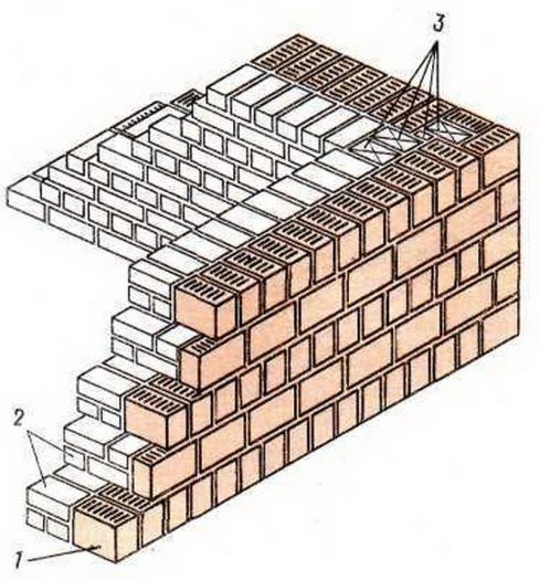 - Трехрядная. Через 3 ряда перевязок следует 5 пустотных. Промежуток заполняется керамзитом или пенобетонными блоками.