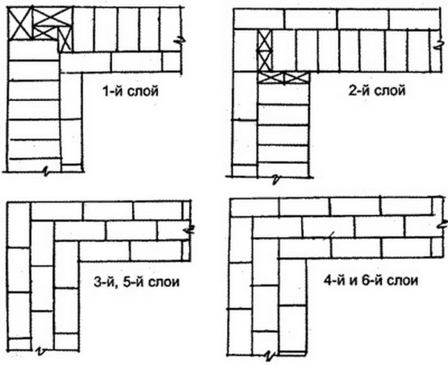 Часто используется для кладки стен в 1 кирпич, чем многократно повышает прочность. Схема выглядит следующим образом: